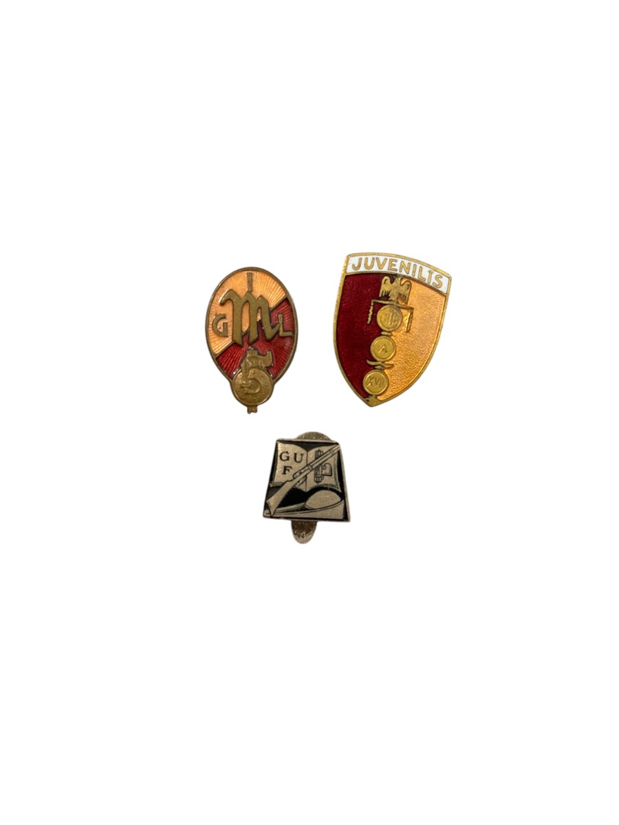 Il terzo è un distintivo GIL del ventennio - marcato Castelli e Cercosa - Milano. 25 x 12 mm.