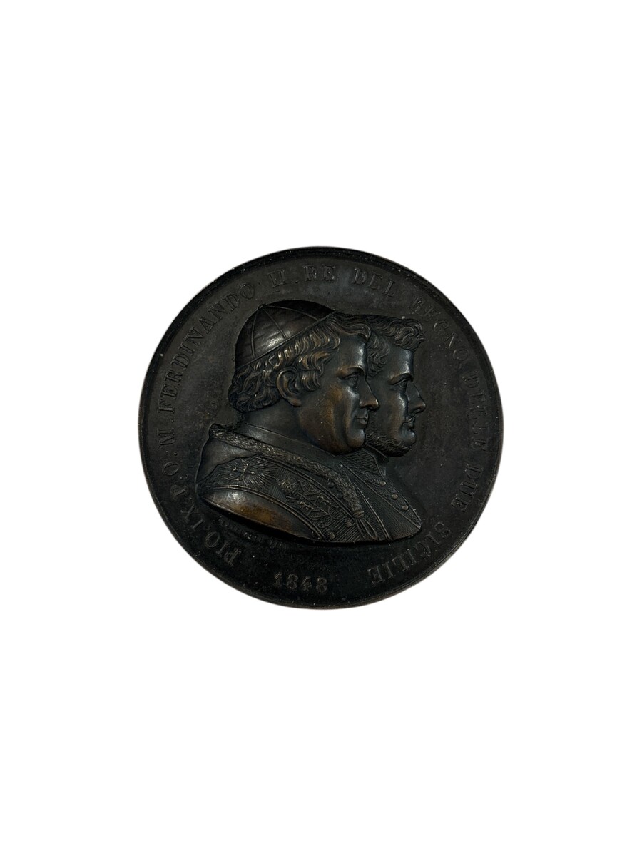 Previous Lot 157 Next Dams Casa D'aste - Via aurelia 61/63, 00165 Roma Numismatica, Medaglistica e Memorabilia Numismatica, Medaglistica e Memorabilia Thursday 30 January 2025 hours 14:00 (UTC +01:00) Medaglia Per l'Esilio del Papa Pio IX a Gaeta 1848 5,7 cm diametro In bronzo brunito.