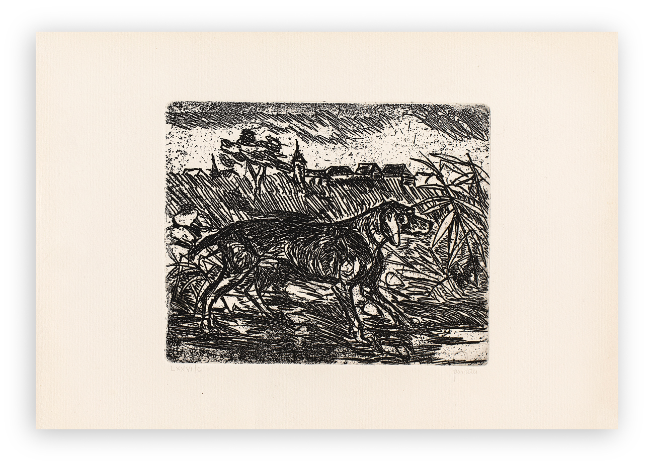 ANTONIO LIGABUE (1899-1965) - Pointer con paesaggio notturno, 1977