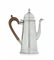 CIOCCOLATIERA REGINA ANNA IN ARGENTO, LONDRA, 1702, troncoconica liscia su base gradinata con manico a voluta in legno e pomolo del coperchio asportabile.