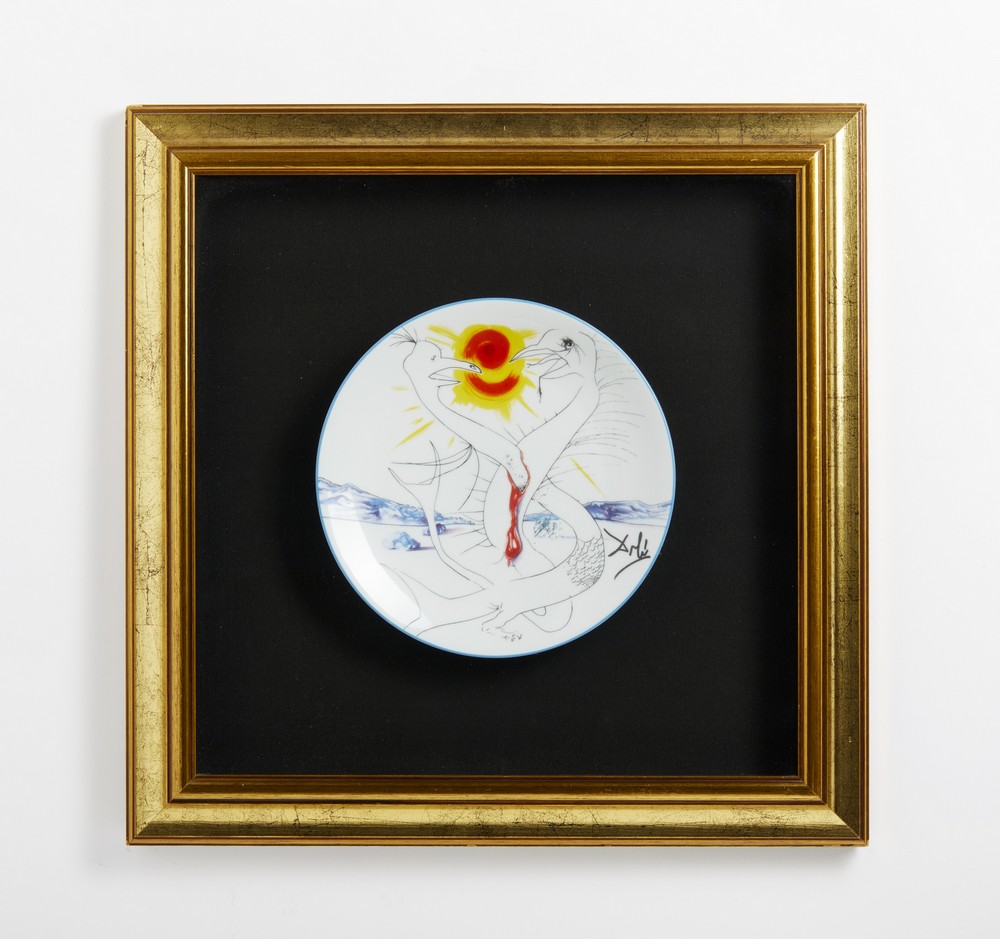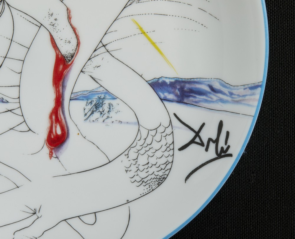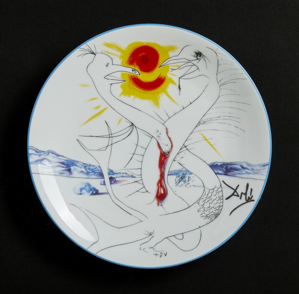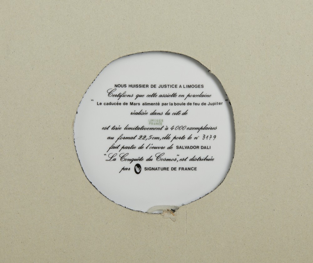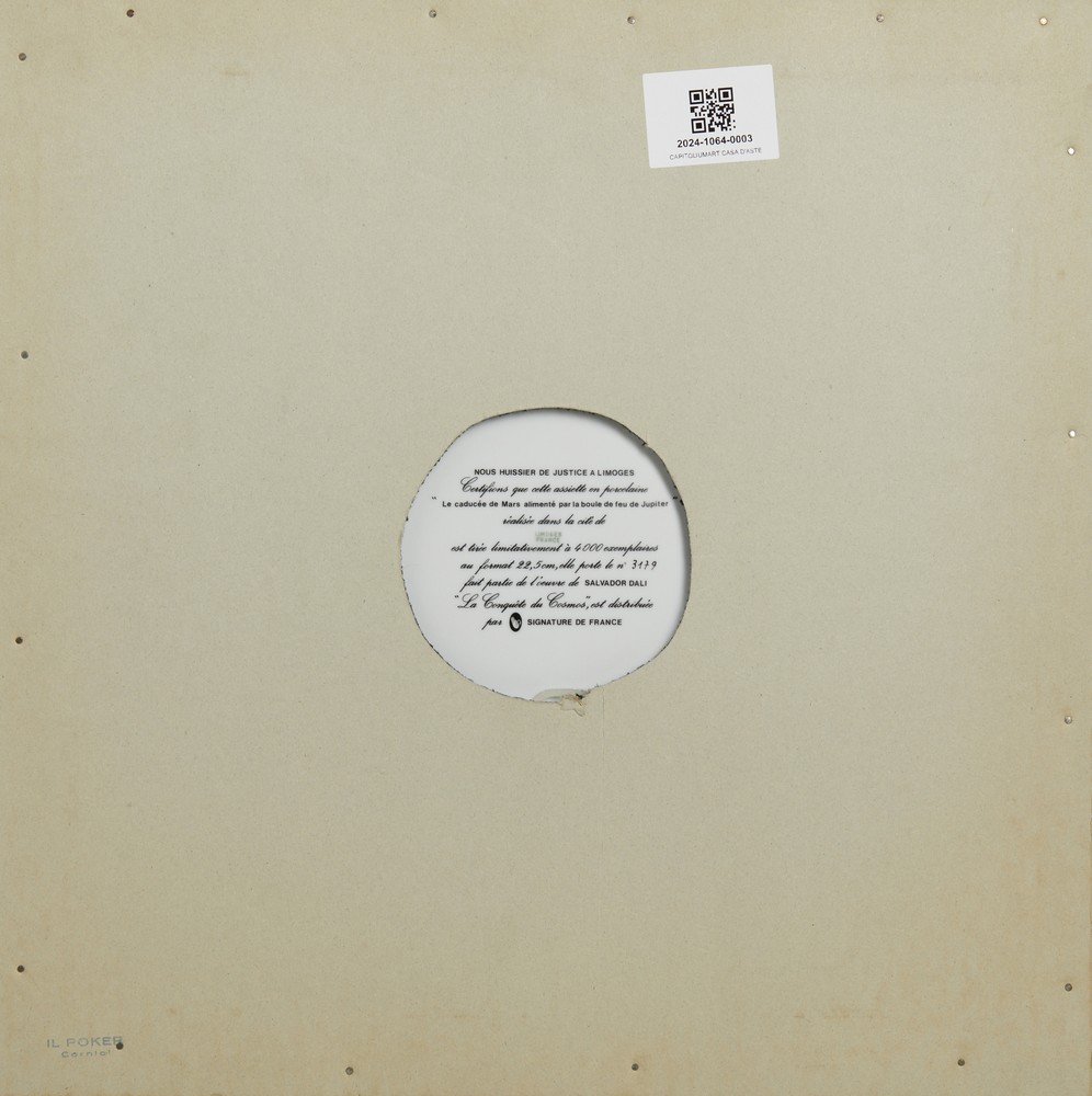 DALI' SALVADOR (1904 - 1989) LA CADUCEE DE MARS ALIMENTE' PAR LA BOULE FEU DE JUPITER. Porcellana Limoges. Cm 22,50 x 22,50. firma a stampa