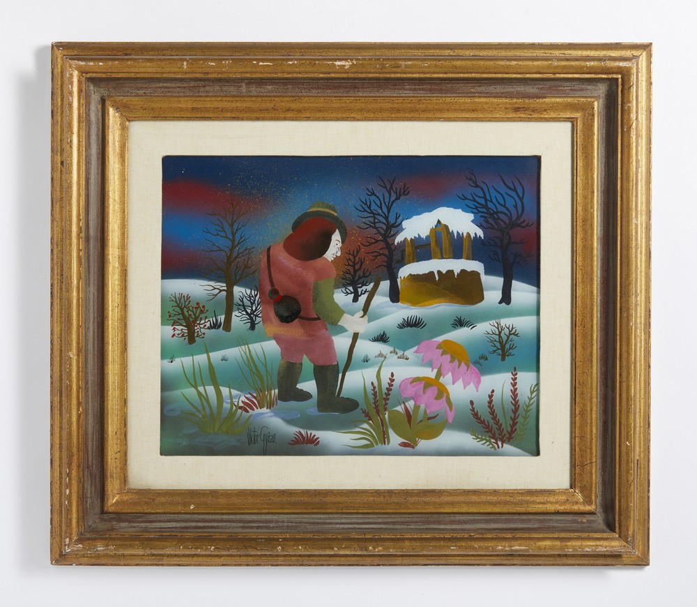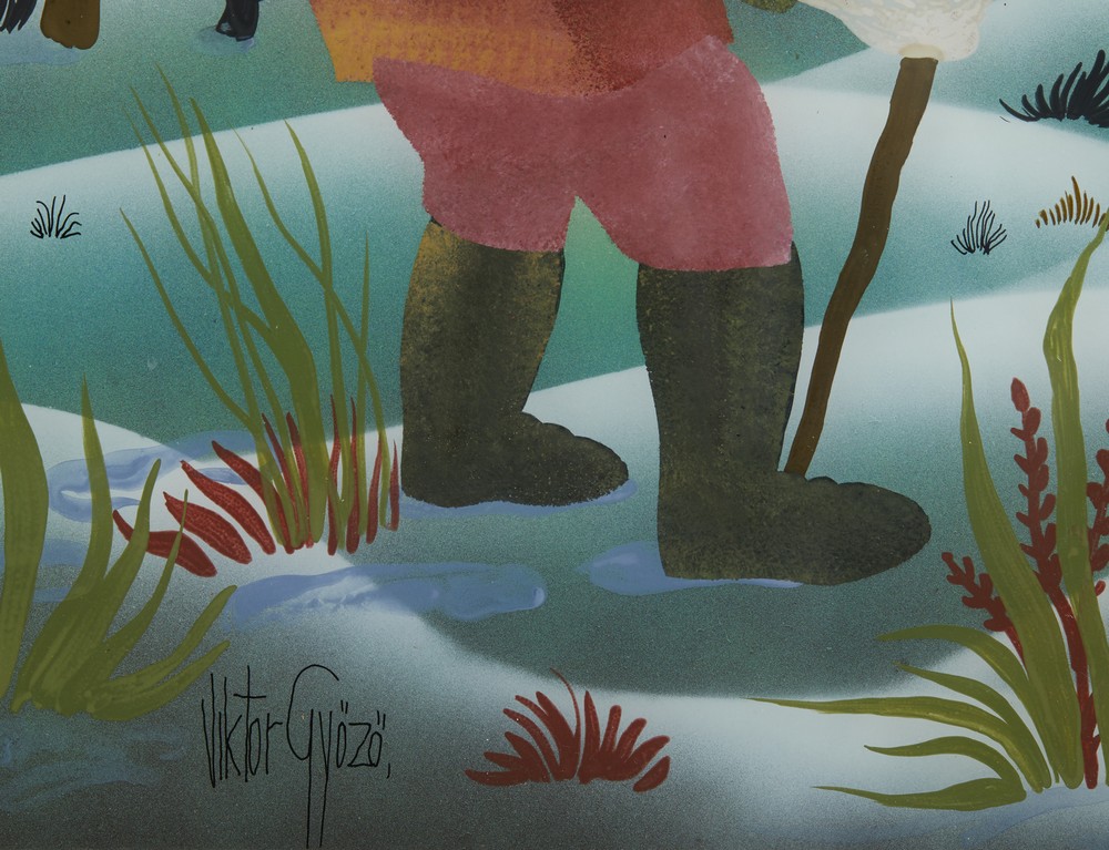 GYOZO VIKTOR SENZA TITOLO. 1975. Acrilico su vetro . Cm 50,00 x 40,00. firma