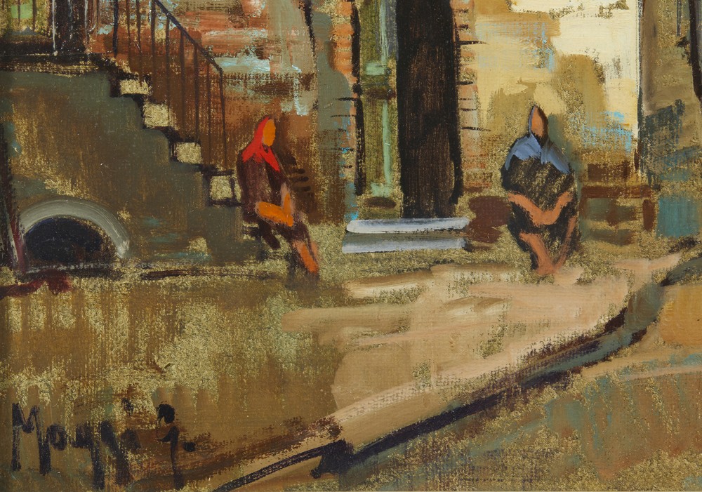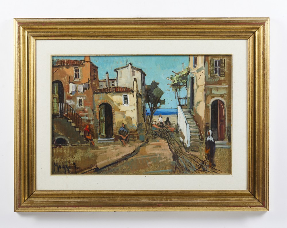MAGGI GIAMPIETRO (n. 1934) CASE DI PESCATORI. Olio su tela. Cm 60,00 x 40,00. firma