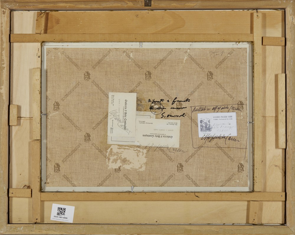 sul retro: firma, etichetta Galleria d’arte Castagna Milano e Galleria Palazzo Carmi Parma