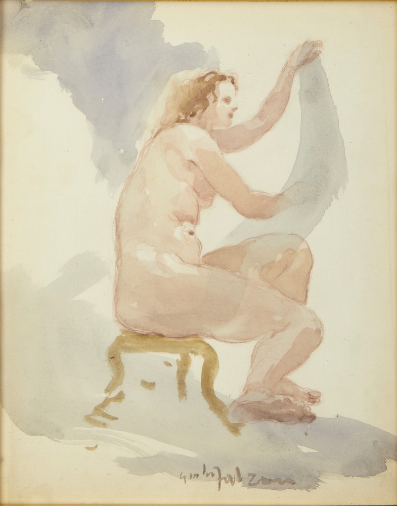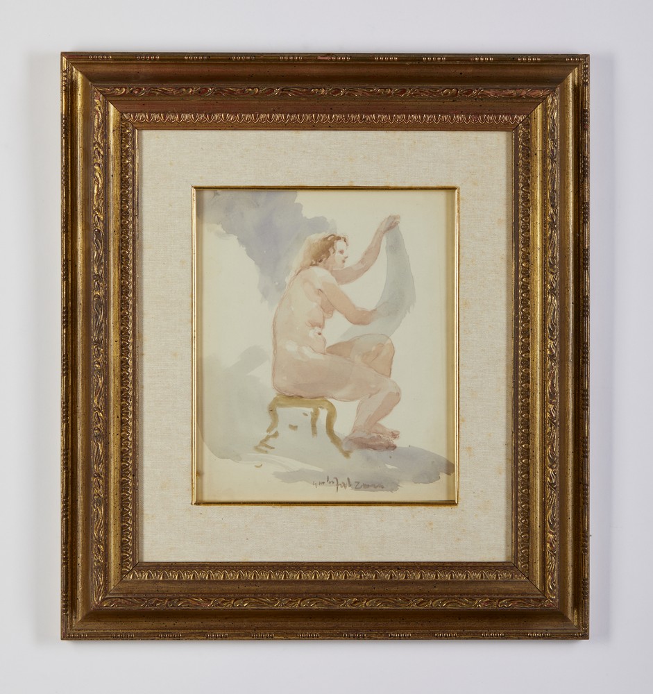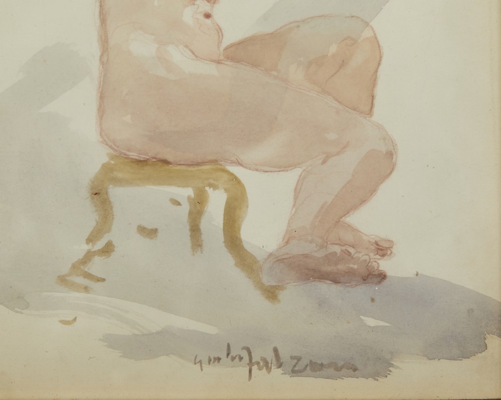 FALZONI GIULIO (1900 - 1978) DOPO IL BAGNO, (1953). 1953. acquarello su carta. Cm 24,00 x 28,50. firma