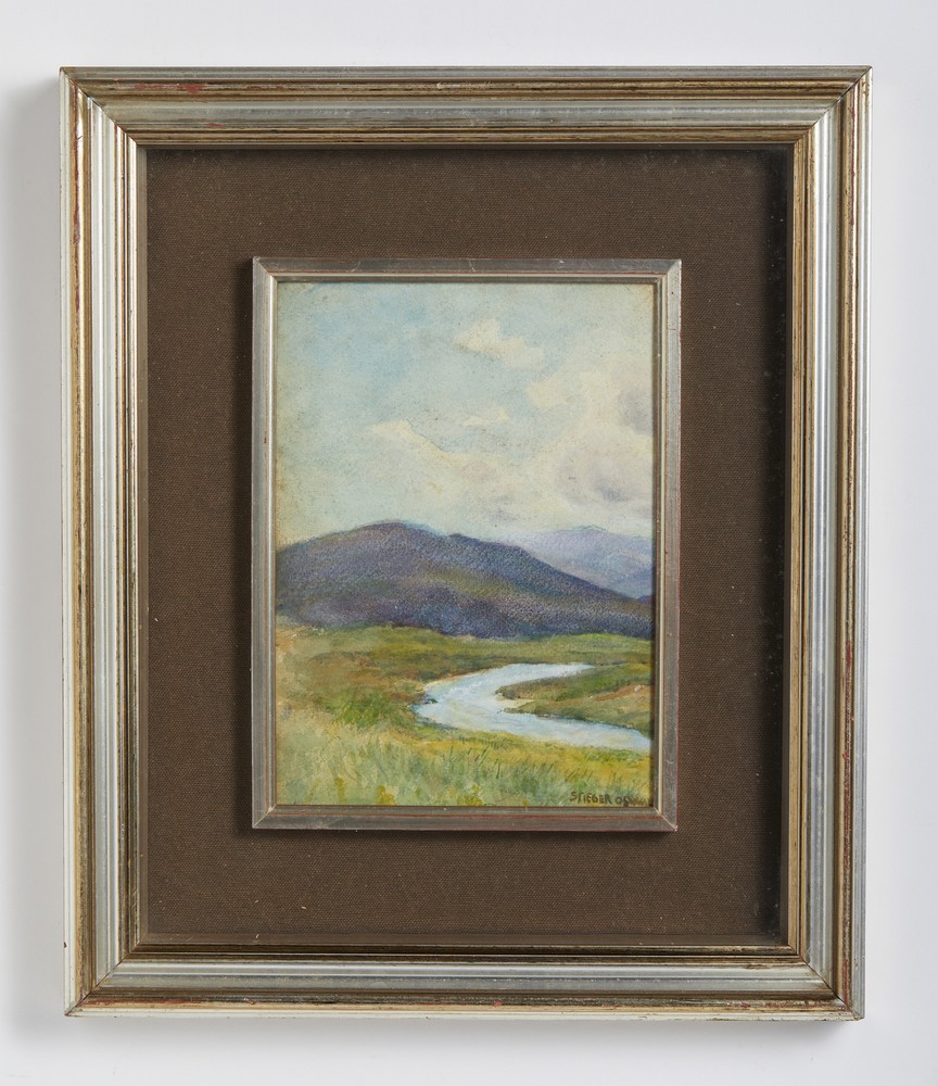 STIEGER OSWALD (1857 - 1924) A GLEAM AN AUTUMN DAY. Acquarello, carboncino e pastello su cartone. Cm 20,00 x 27,00. firma