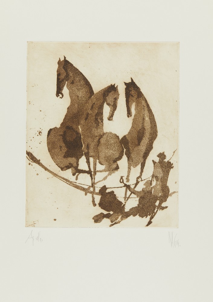 ARNOLDI NAG (n. 1928) CARTELLA COMPOSTA DA N.5 FOGLI: HORSES. 2004. Acquatinta. Cm 51,50 x 72,00 x 1,50. ogni foglio presenta firma, data e tiratura a matita, es. p.d.a