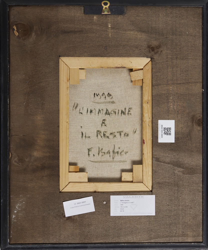 BAFICO ENRICO (n. 1943) L'IMMAGINE E IL RESTO. 1999. Olio su tela. Cm 30,00 x 40,00. firma