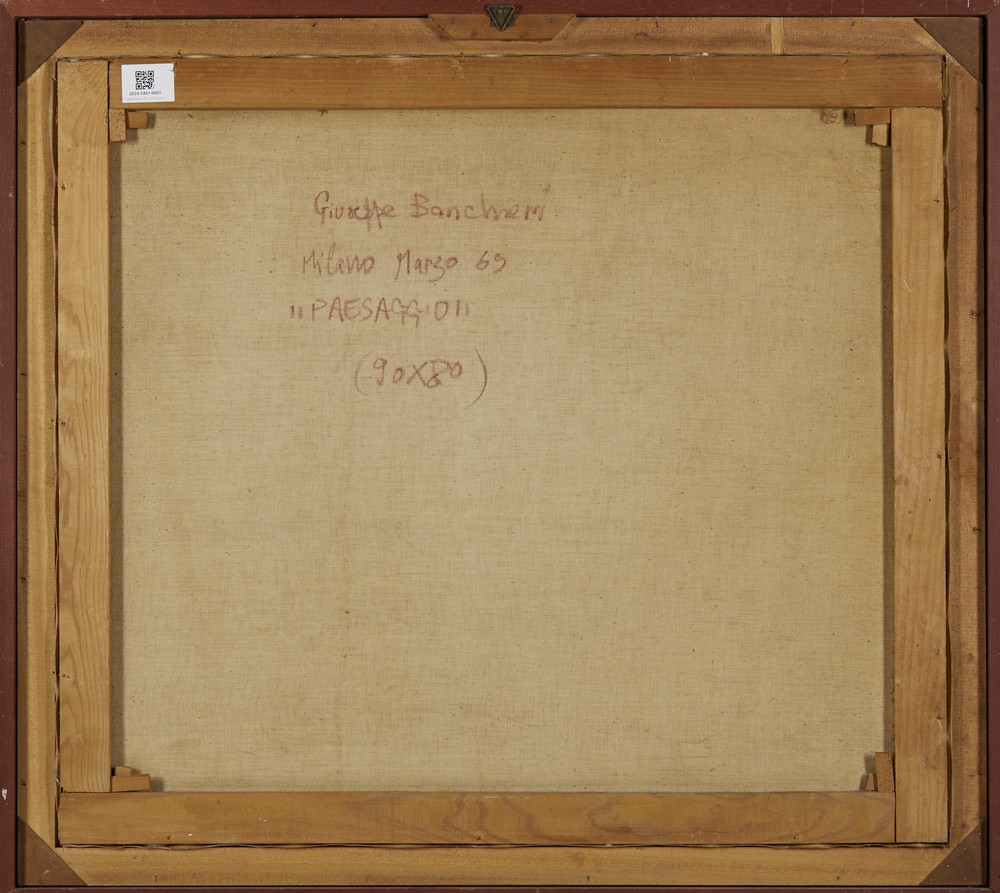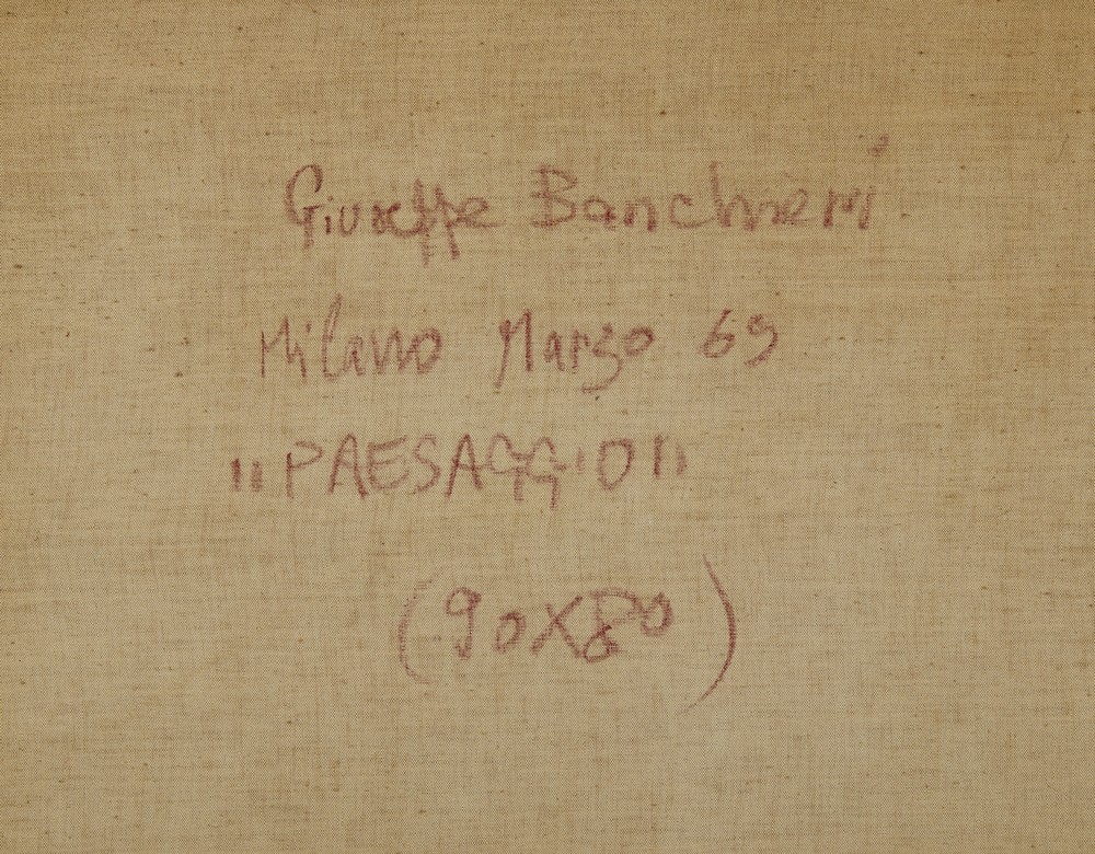 BANCHIERI GIUSEPPE (1927 - 1994) PAESAGGIO. 1969. . Cm 90,00 x 80,00. sul retro: firma, data, titolo. Cornice presente