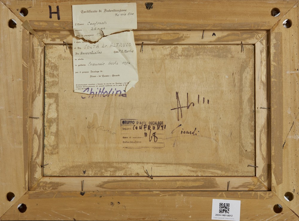 sul retro: timbro Gruppo d’arte Decalage, certificato di autenticazione. Cornice presente