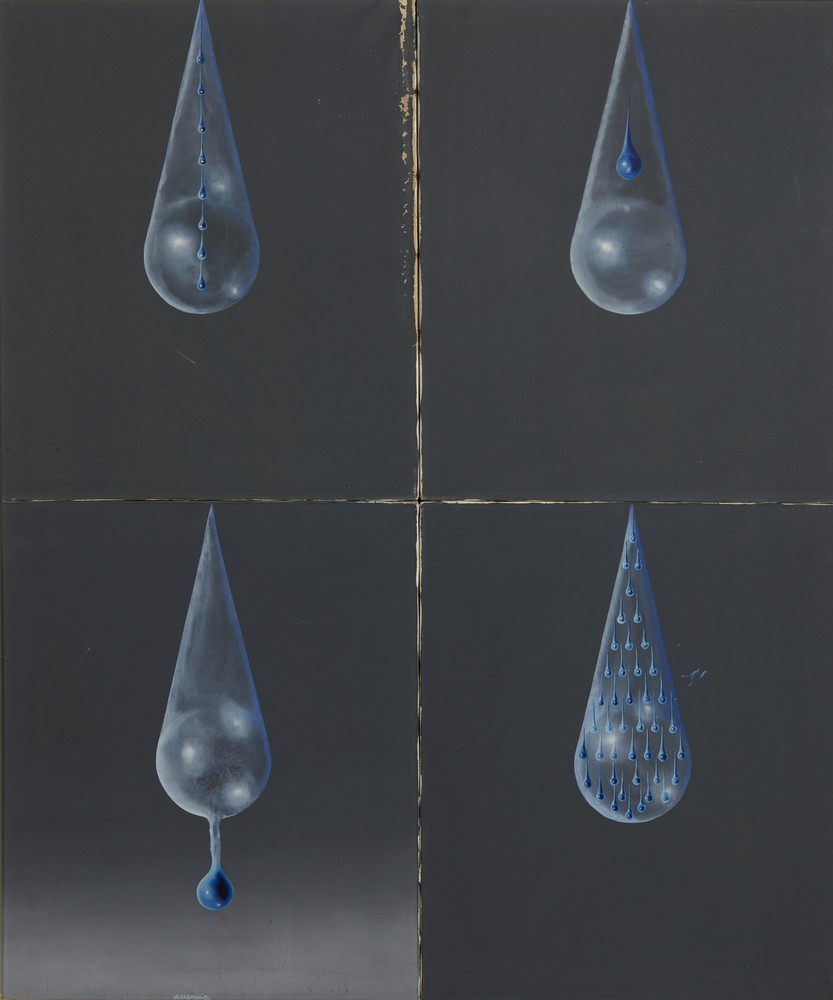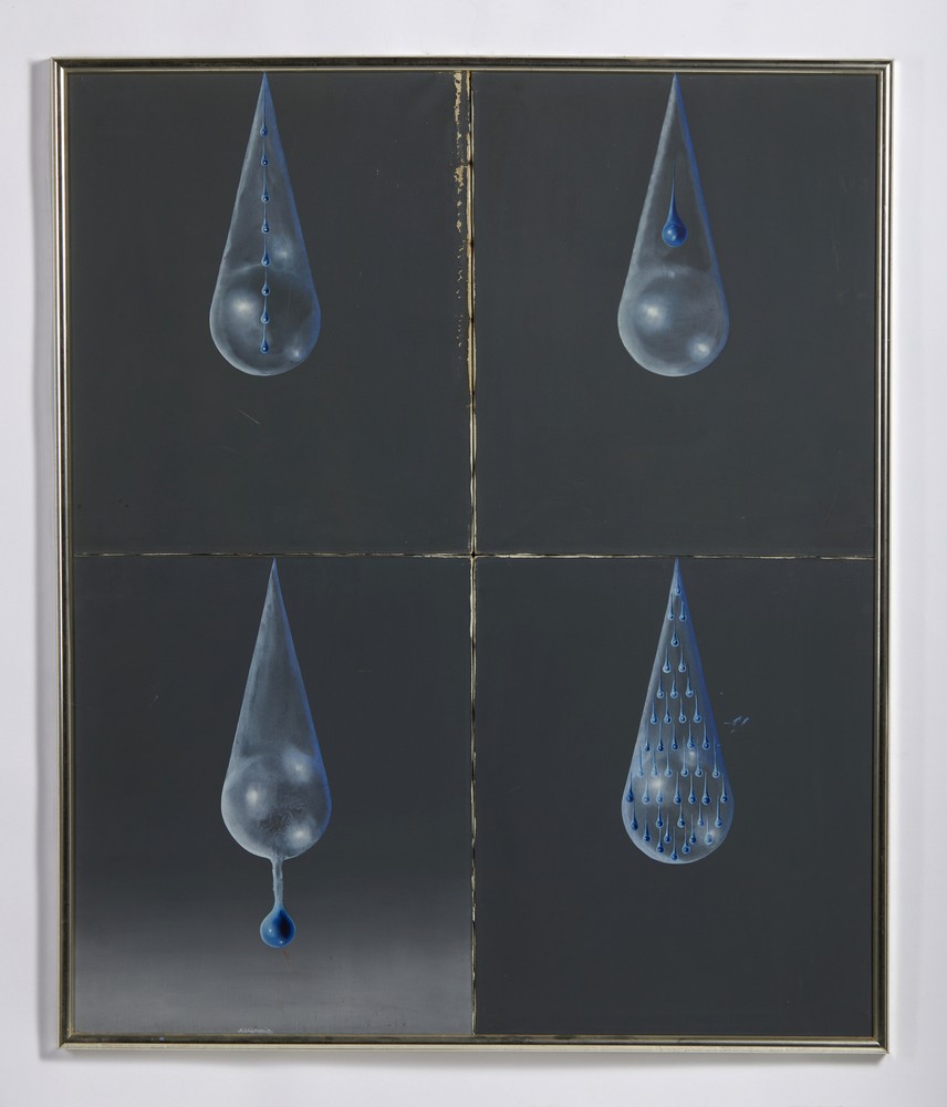 MARGONARI RENZO (n. 1937) LA METAPIOGGIA. 1970. Tecnica mista su tela. Cm 100,00 x 120,00. firma, data