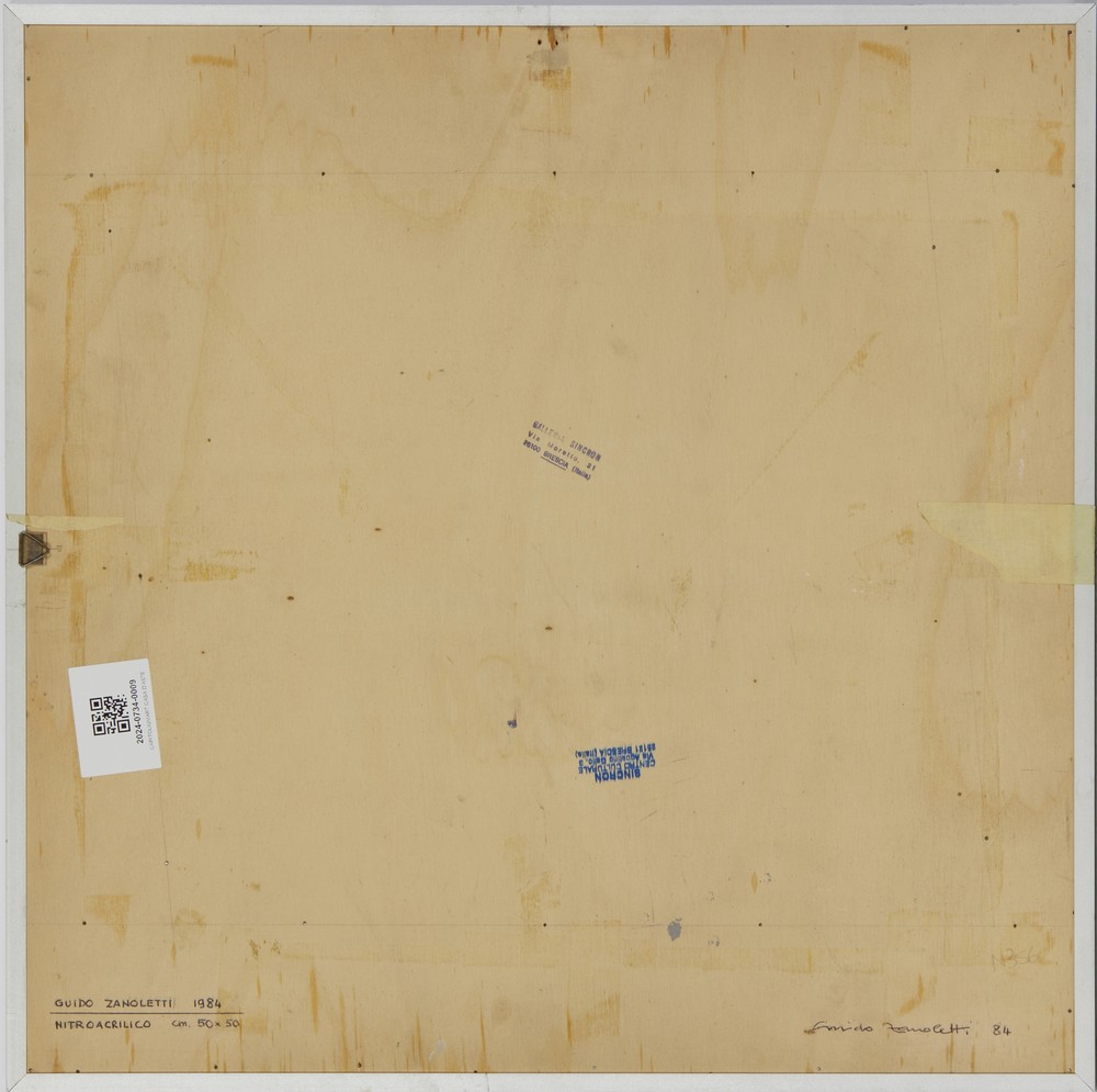 ZANOLETTI GUIDO (1933 - 2014) SENZA TITOLO. 1984. tecnica mista, nitroacrilico e collage su rilievo. Cm 52,00 x 52,00. sul retro: firma, titolo, timbro di provenienza