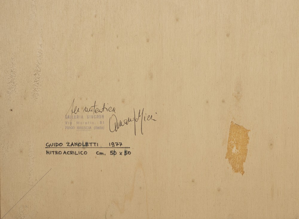 ZANOLETTI GUIDO (1933 - 2014) SENZA TITOLO. 1970. nitroacrilico. Cm 50,00 x 50,00. sul retro firma, data, timbro di provenienza