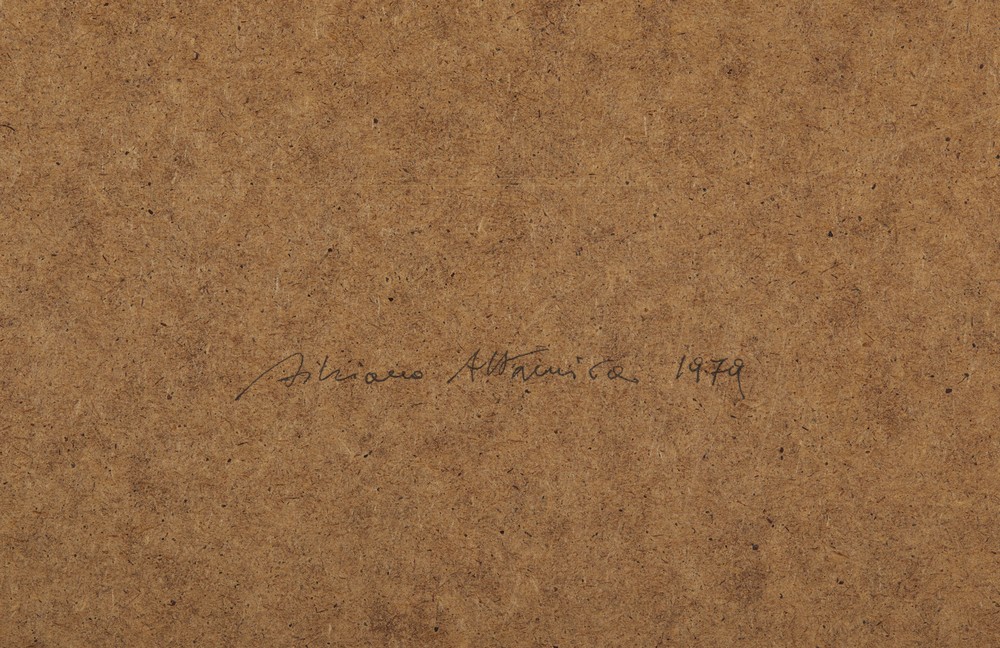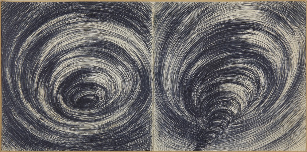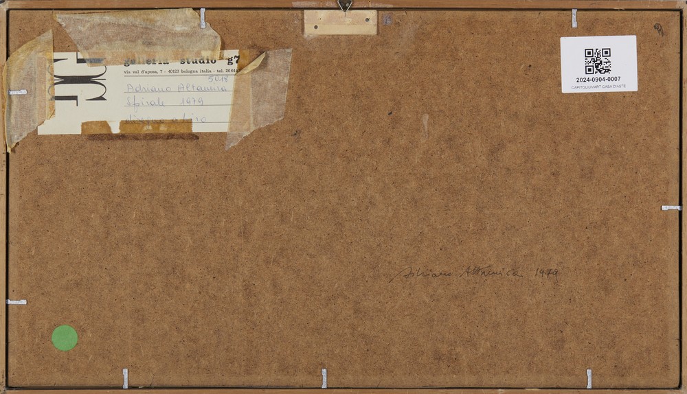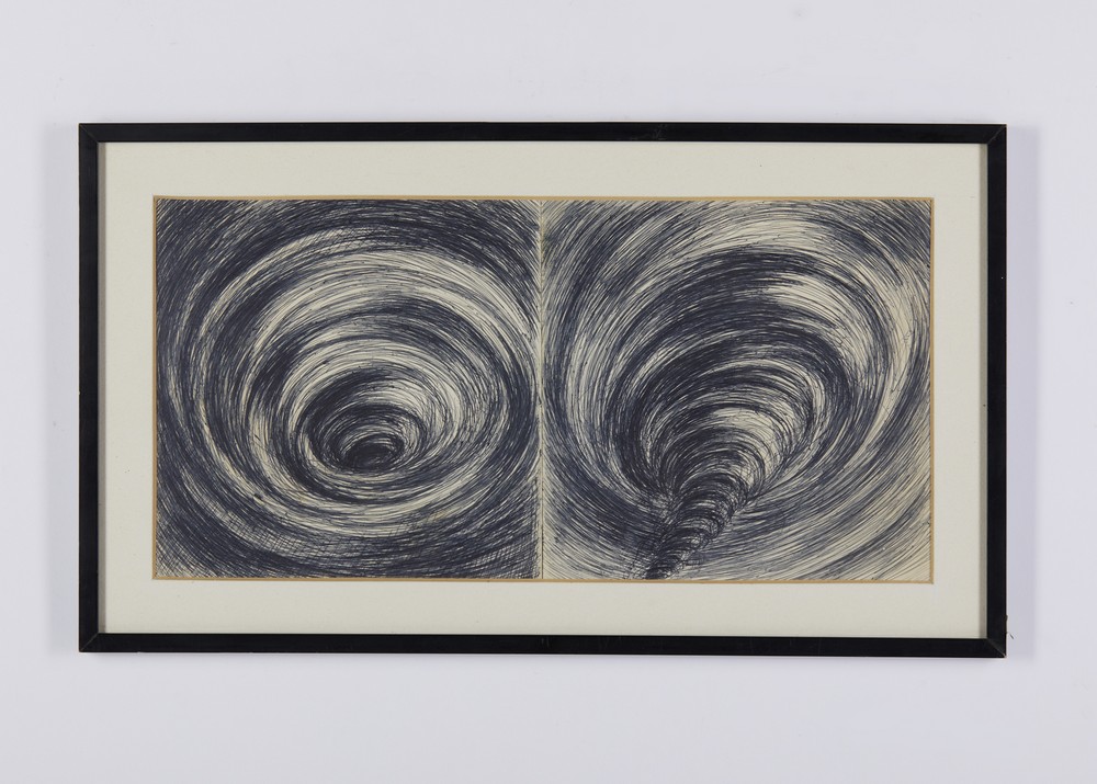 ALTAMIRA ADRIANO (n. 1947) VORTICE, 1973 -1979. Disegno a biro. Cm 41,00 x 20,00. sul retro: firma e data; etichetta Studio g7, Bologna; sul supporto titolo, data e iscrizioni