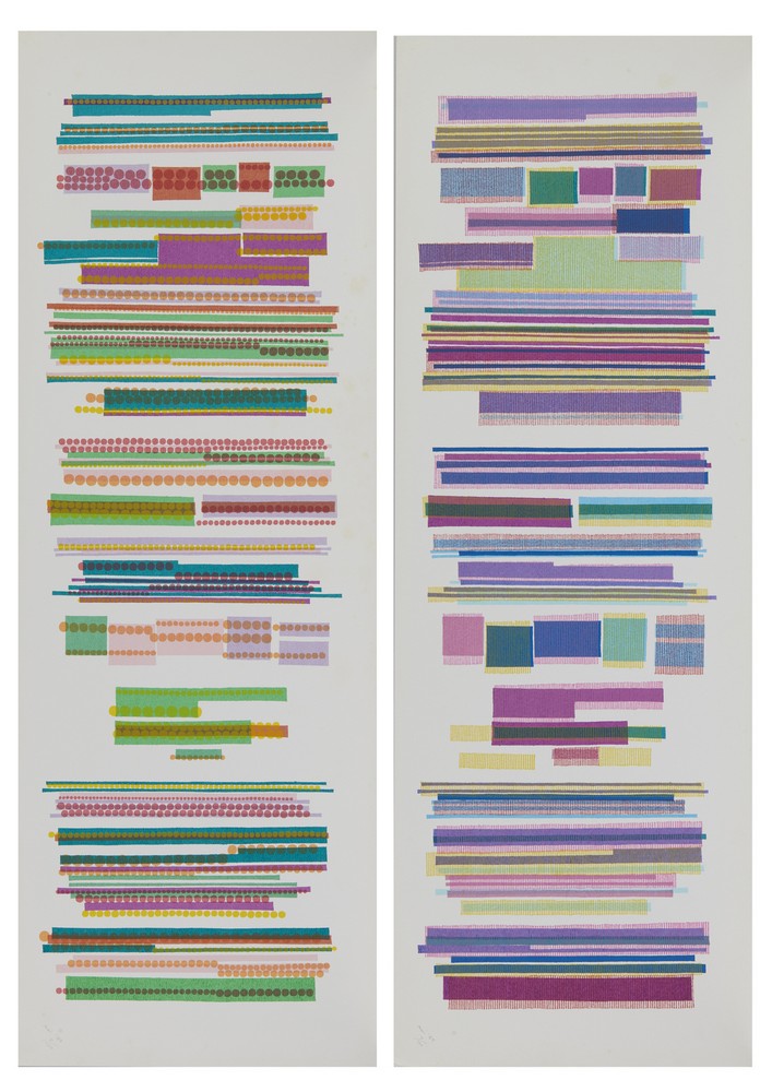 HUBER-AOI KONO (n. 1936) LOTTO COMPOSTO DA N.2 FOGLI: ORIZZONTALE - VERTICALE . 1989. Serigrafia. Cm 34,50 x 99,50. firma, data e tiratura a matita, es. 7/100