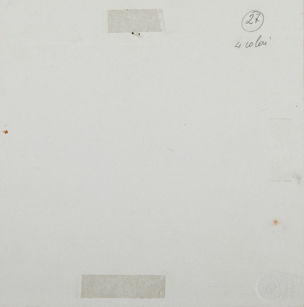 BONALUMI AGOSTINO (1935 - 2013) DUE DI DENARI, 1971. tecnica mista su cartoncino. Cm 20,50 x 20,50. firma e data; timbro a secco dello stampatore