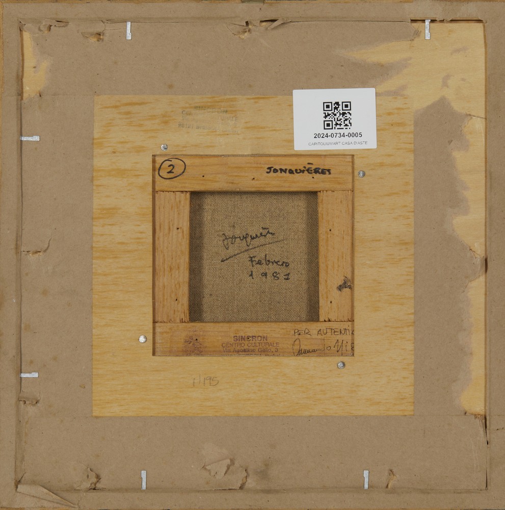 JONQUIERES EDUARDO (1918 - 2000) SENZA TITOLO. 1981. acrilico su tela. Cm 15,00 x 15,00. sul retro: firma, data, timbro di provenienza