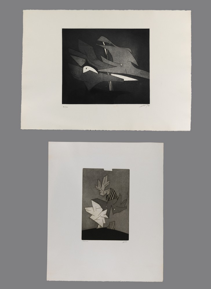 DOVA GIANNI (1925 - 1991) LOTTO COMPOSTO DA N.2 FOGLI. SENZA TITOLO. acquaforte. . 1. 99/100. Tiratura e firma in basso a matita. Dimensione: 57,5x48, dimensione lastra: 29,5x20 cm.