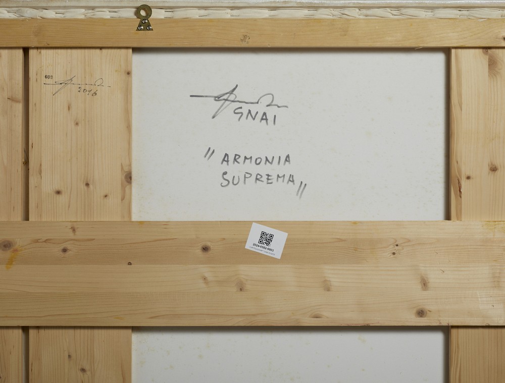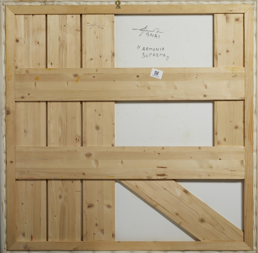 AMADIO GIUSEPPE (n. 1944) GNAI ARMONIA SUPREMA. 2016. acrilico su tela estroflessa. Cm 120,00 x 120,00. sul retro: firma e titolo