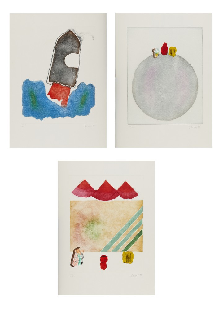 CARMI EUGENIO (1920 - 2016) CARTELLA COMPOSTA DA N.3 FOGLI. 1988. Acquatinta. Cm 49,50 x 67,50. firma, data e tiratura, es.VIII/XXV, timbro a secco dello stampatore.