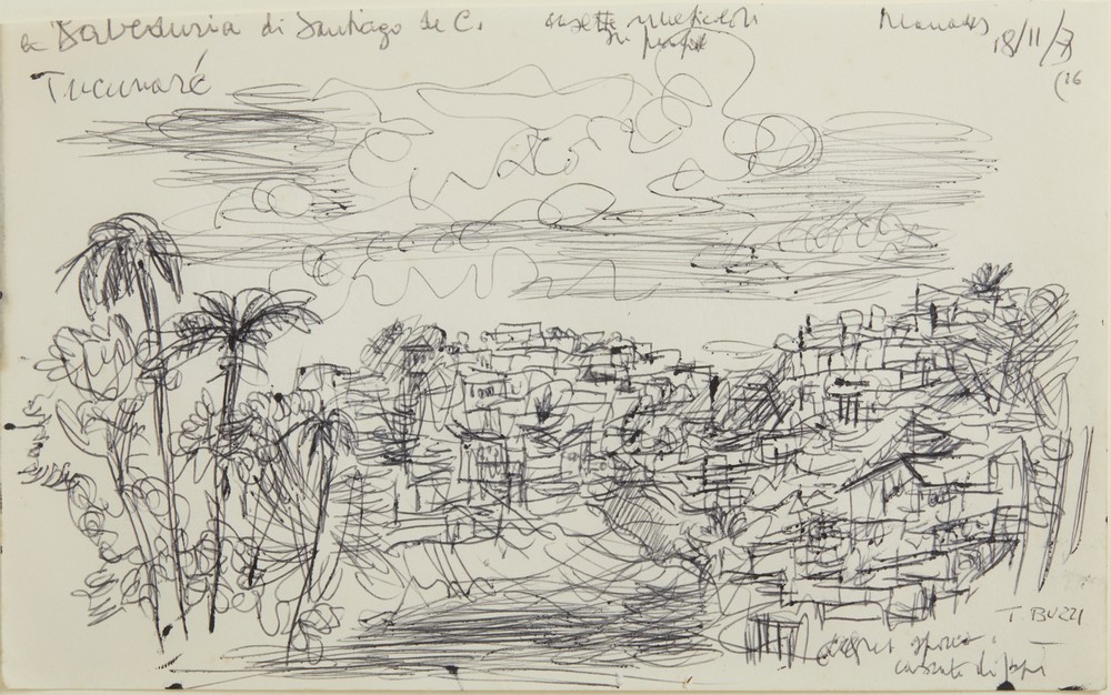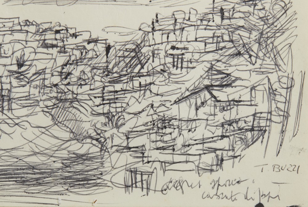 BUZZI TOMASO (1900 - 1981) CASETTE MULTICOLORI. Inchiostro su carta. Cm 22,80 x 14,00. firma, data e titolo. Cornice presente
