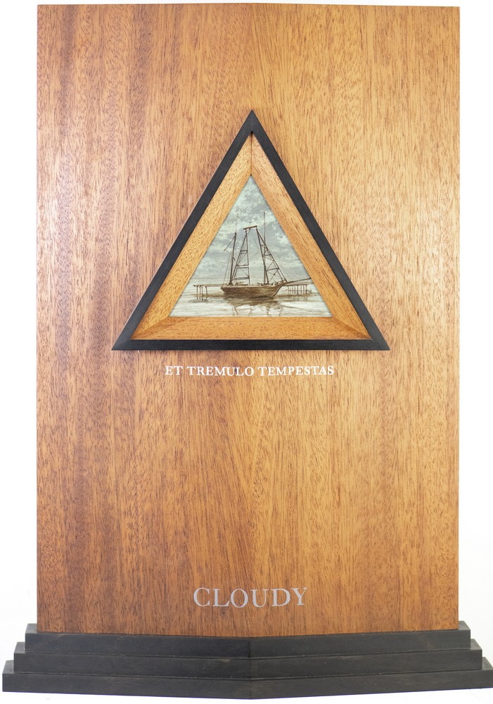 CANTAFORA ARDUINO (n. 1945) CLOUDY - ET TREMULO TEMPESTAS. Olio su legno. Cm 36,00 x 50,00 x 3,50. Titolo