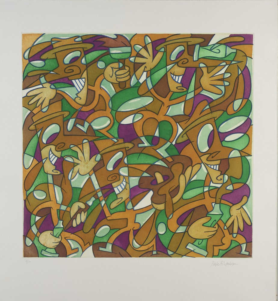 ECHAURREN PABLO (n. 1951) ARTISTI MICA TRISTI. 1998. Acquaforte e acquatinta. Cm 90,50 x 99,00. tiratura e firma a matita, es. 7/10.