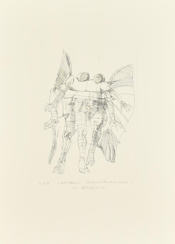 Walter Cremonini I GEMELLI (SEGNO ZODIACALE) incisione, cm 18x13, su carta cm...