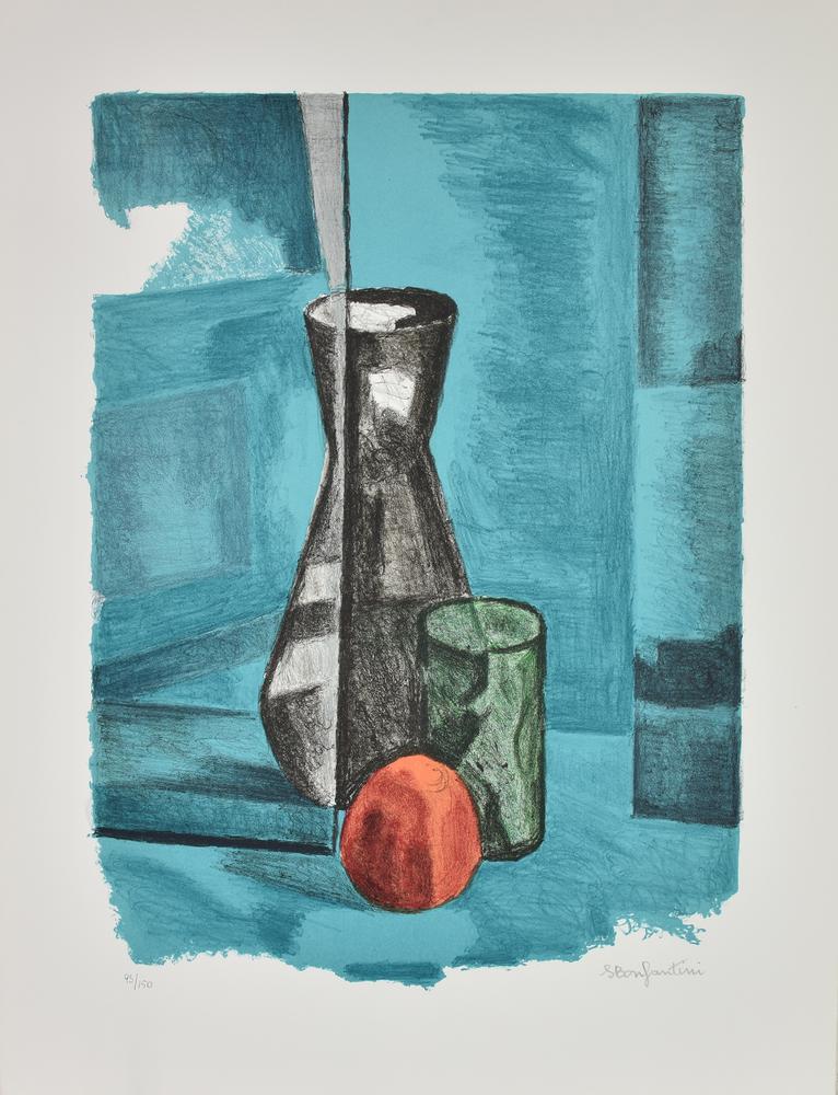 Sergio Bonfantini NATURA MORTA litografia, cm 70x50; es. 93/150 firma e tiratura