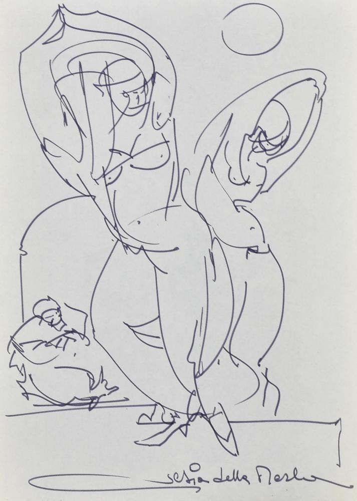 Gianni Sesia della Merla LA DANZA pennarello su carta, cm 30x21 firma sul...