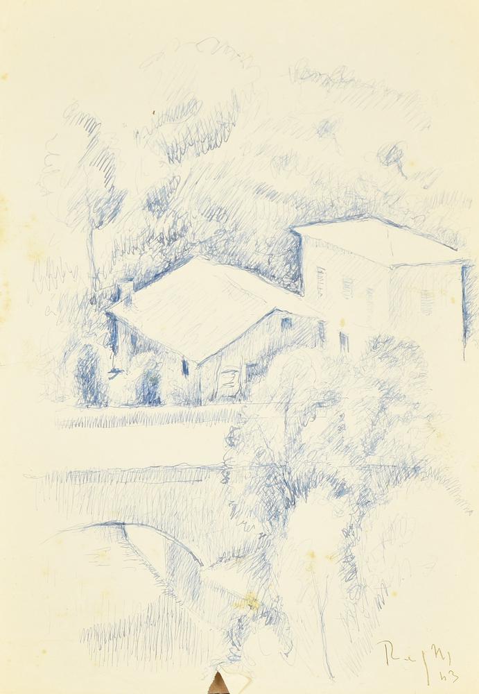 Reginaldo Grossi CASE E PONTICELLO penna su carta, cm 30x21 firma e data...