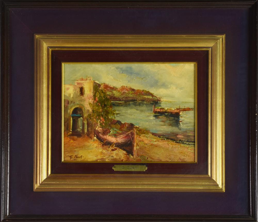 G. Curti PORTICCIOLO olio su tavoletta, cm 16x23 firma