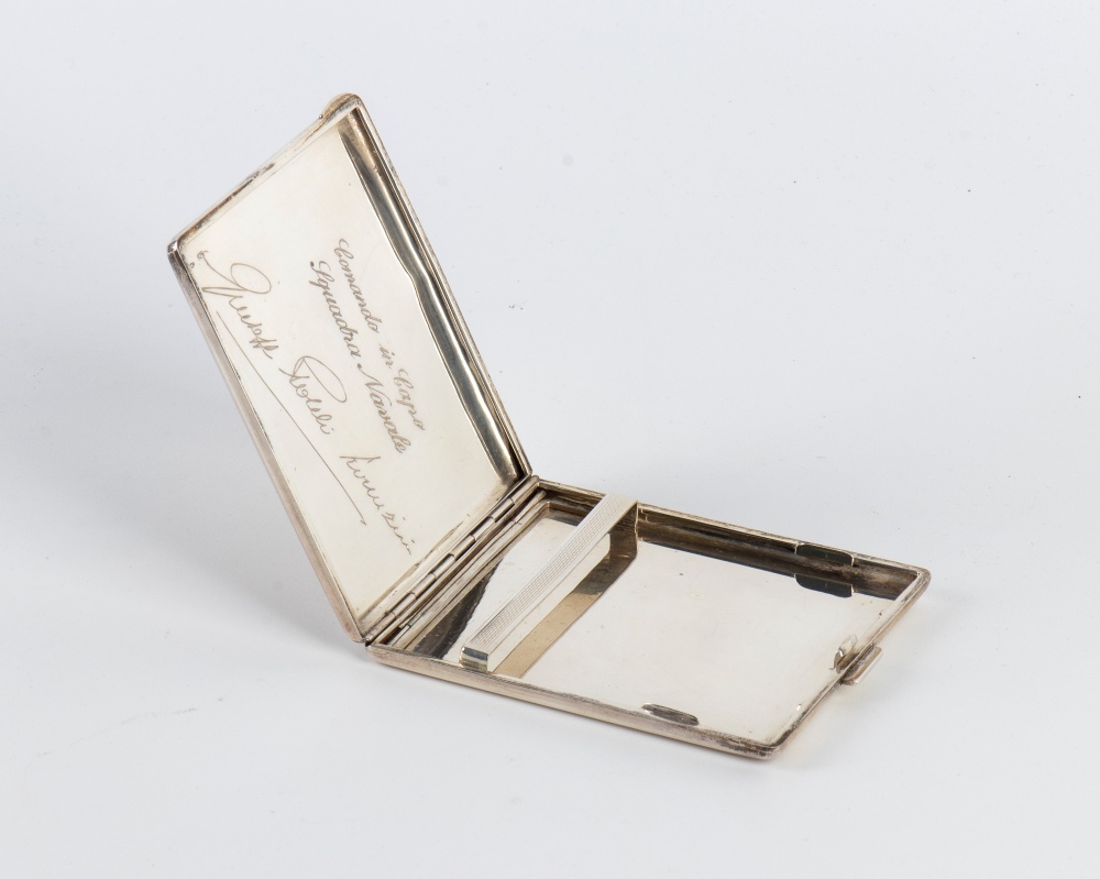 Portasigarette in argento, con all'interno l'incisione COMANDO IN CAPO SQUADRA NAVALE - con la firma incisa in fac-simile Giuseppe Roselli Lorenzini