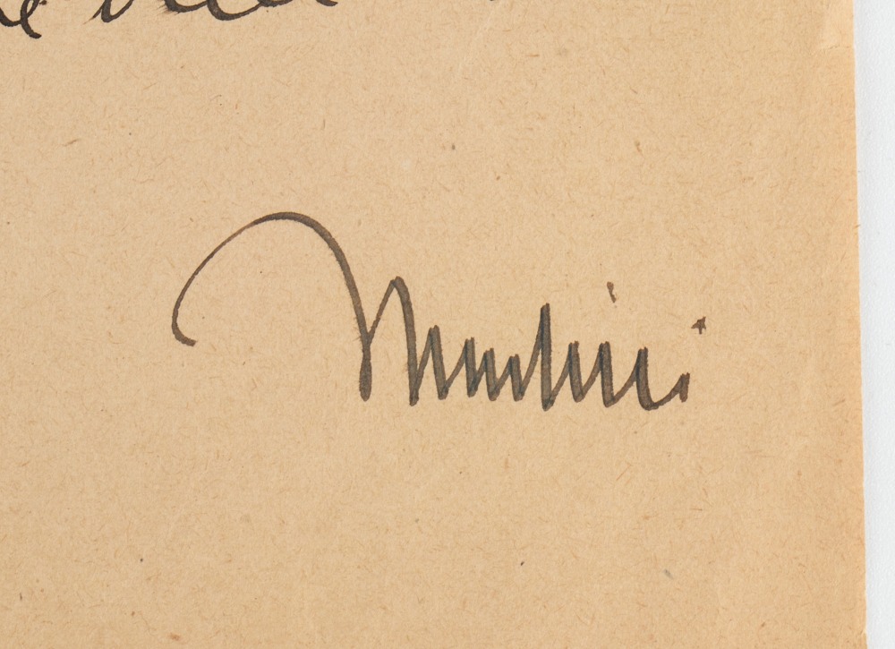 Lettera su due fogli differenti (misure circa cm.23x30 e 22x28) scritta autografa e firmata di pugno da Benito Mussolini, usata come testo per essere poi dattiloscritta, da dover indirizzare all'ambasciatore di Germania in Italia.