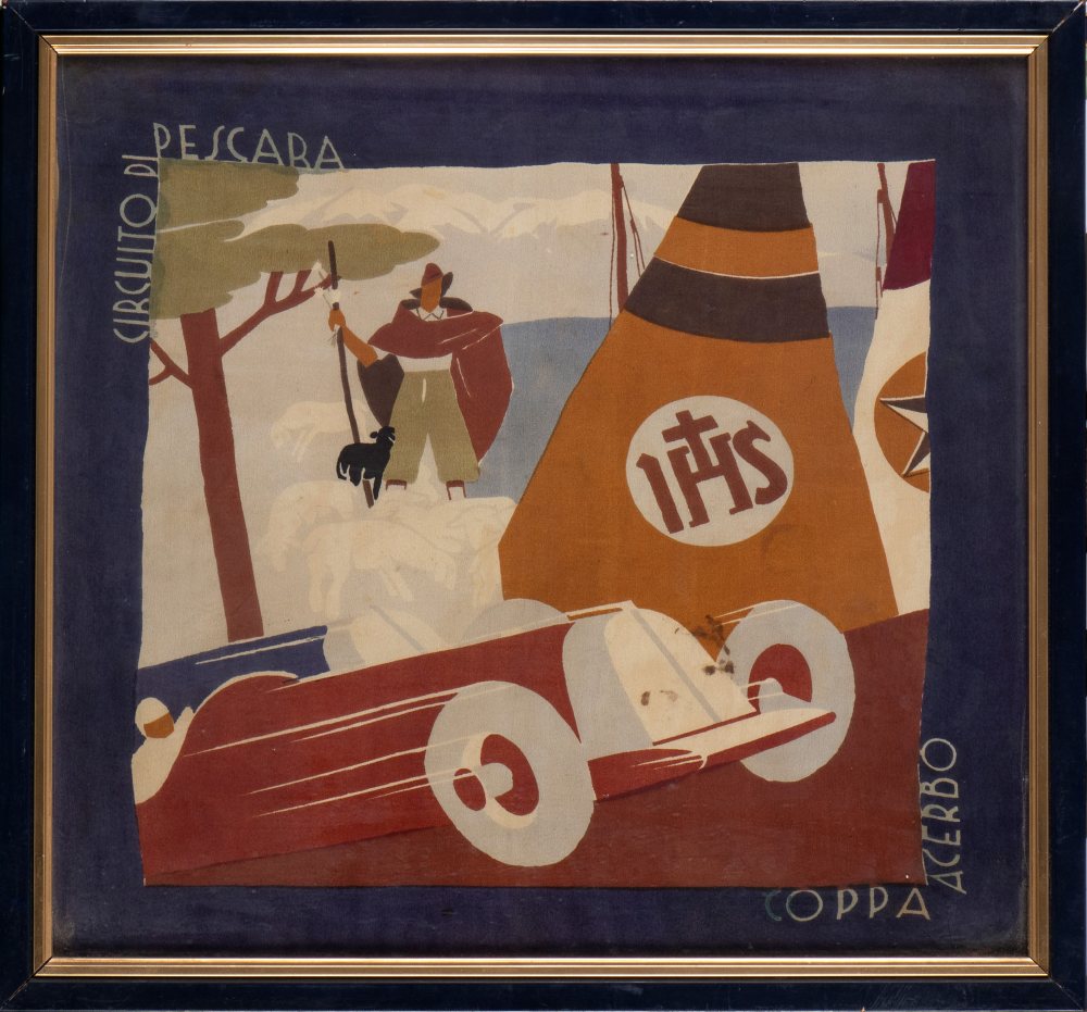 Foulard per la COPPA ACERBO - Circuito di Pescara 1910 litografia 53x53