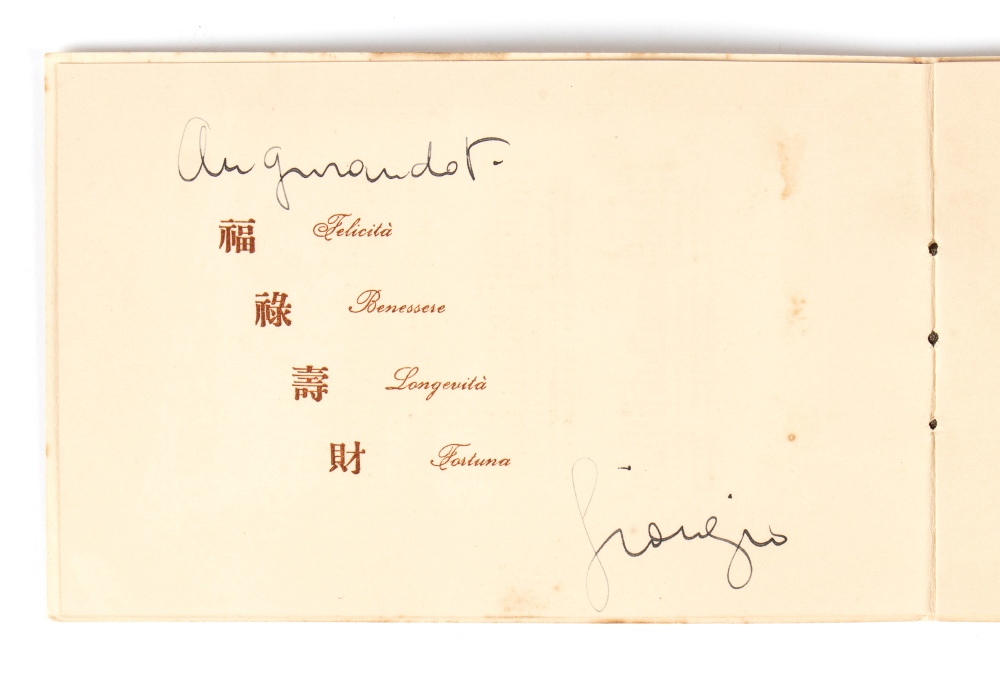 Rarissimo calendario del battaglione italiano in Cina del 1938 con dedica del comandante.