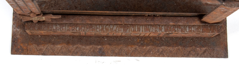 Pesante togli fango in ferro battuto con simboli fascisti, la scritta "VINCERE" nella parte inferiore ed una stella alpina. Molto interessante, di sicura provenienza africana.