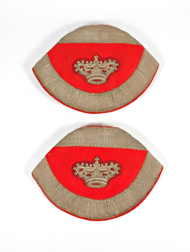 Rara coppia di coprifonda per la bardatura di un generale di epoca Umbertina, ricamo d'Argento su panno rosso, in ottimo stato.