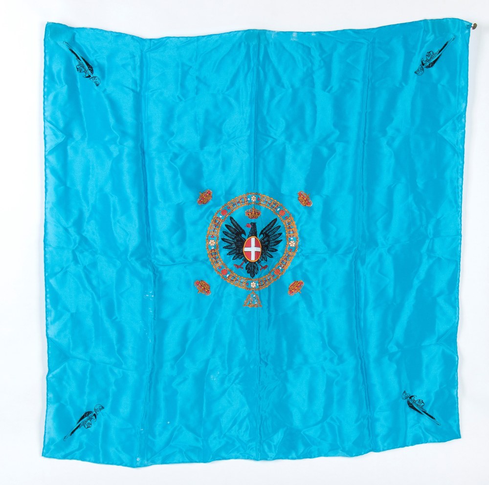 Previous Lot 272 Next Bertolami Fine Art - Piazza Lovatelli 1, 00186 Roma 324 - Memorabilia, Militaria, Ordini Cavallereschi II Sessione -Memorabilia, Militaria, Ordini Cavallereschi Wednesday 12 February 2025 hours 15:00 (UTC +01:00) Foulard dei Corazzieri Reali XX sec.
