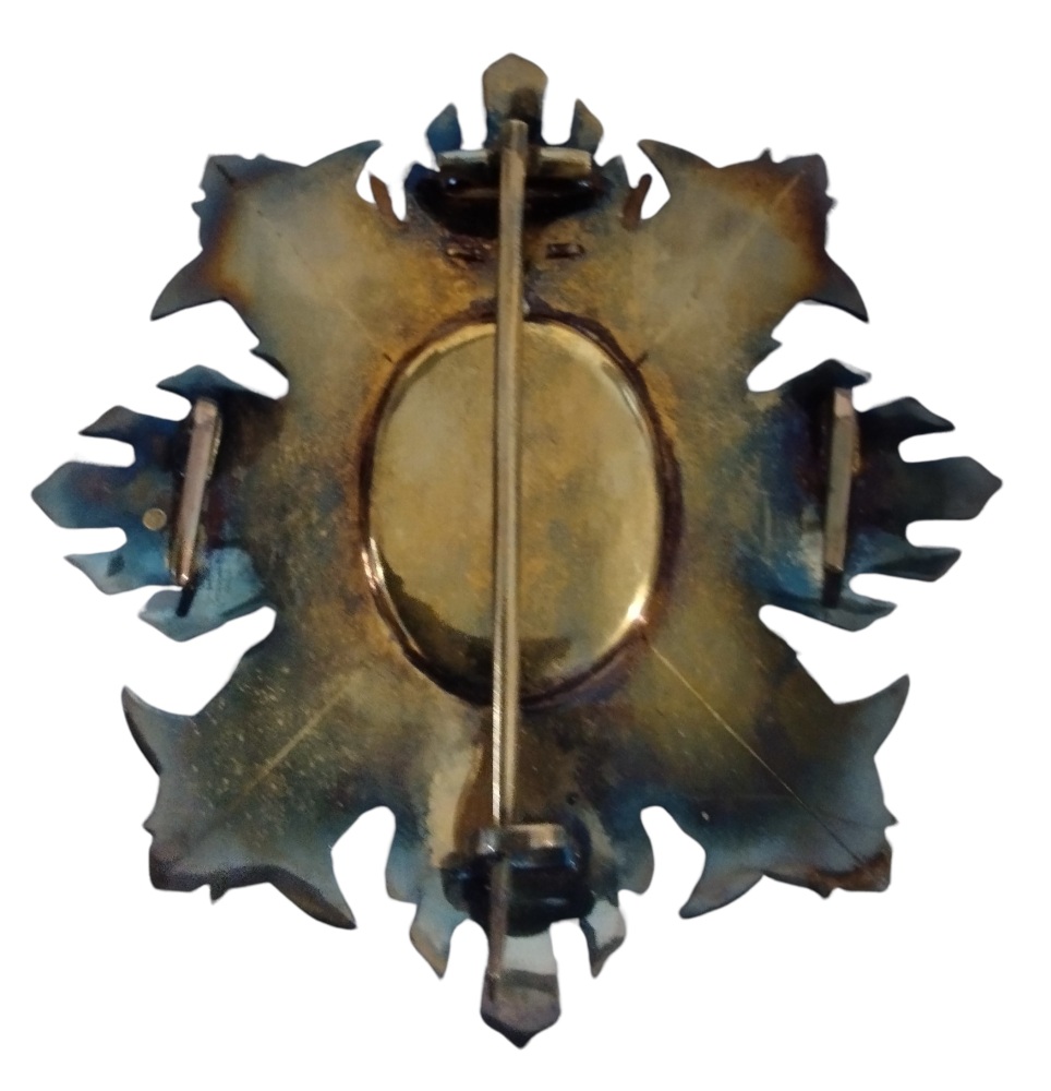 Insegna di epoca Francisco Franco, in metallo dorato e smalti, completa di fascia in astuccio, ottimo stato