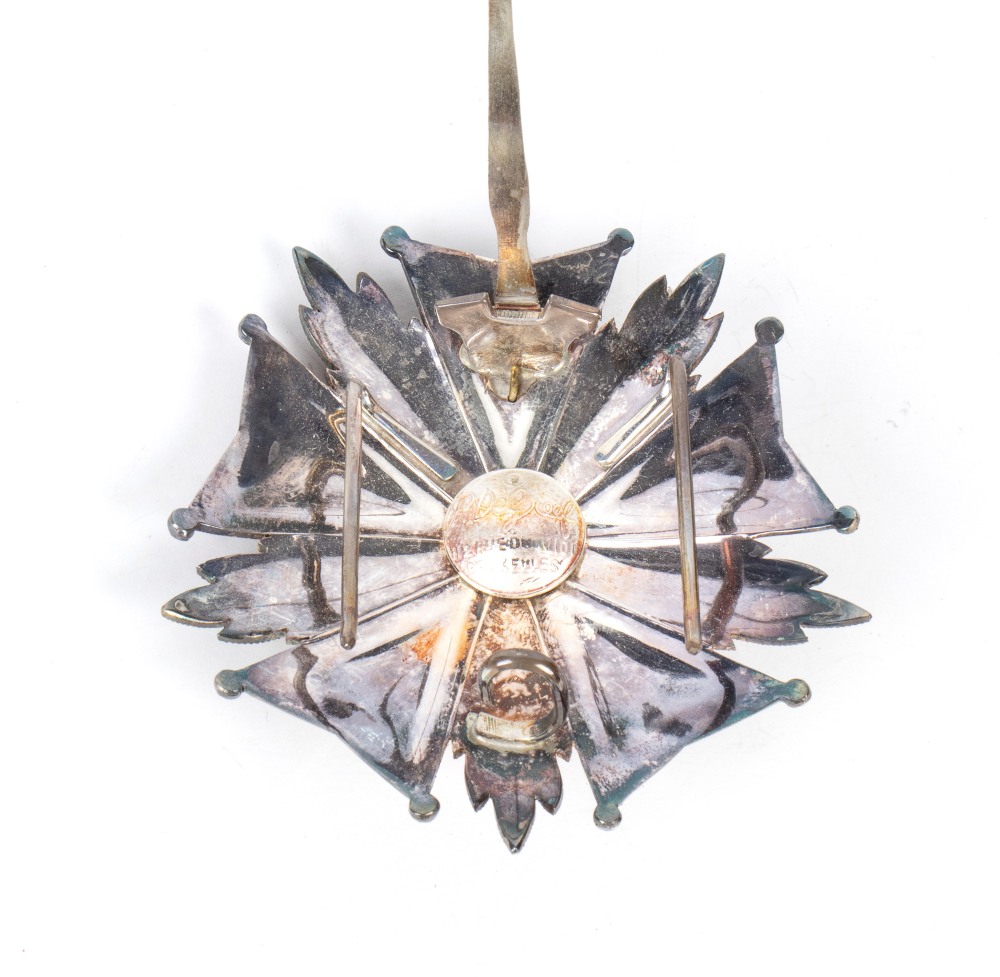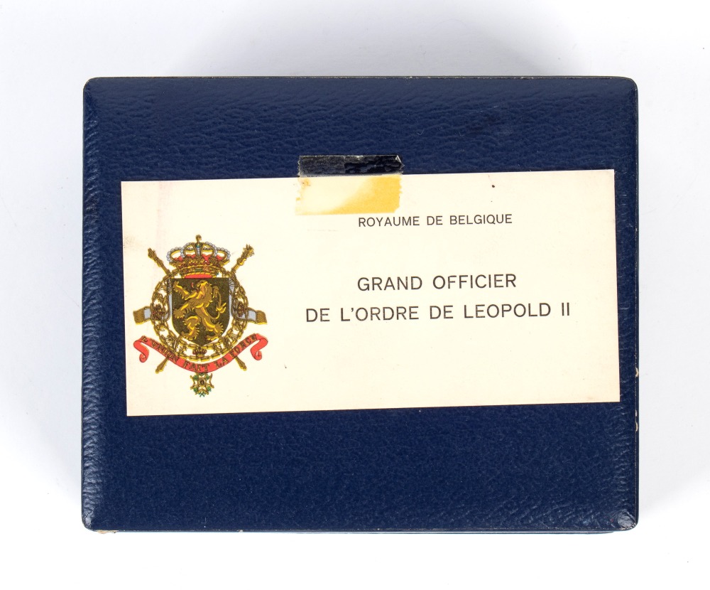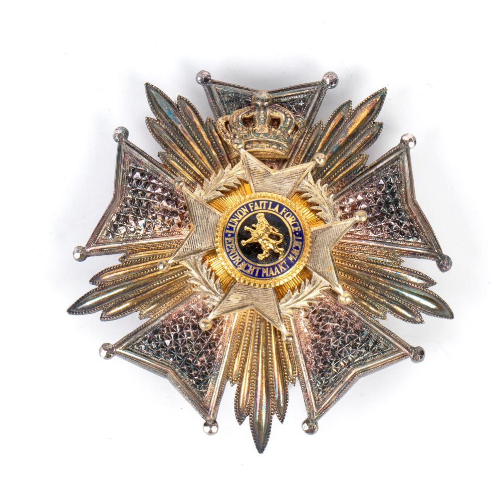 Bella placca da Grande Ufficiale dell'Ordine di Leopoldo II del Belgio, argento parzialmente dorato con applicazioni in smalto, conservata in astuccio con biglietto da visita dell'ambasciata del Belgio a Roma, ottimo stato ed ottima fattura.
