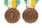 Lotto di due medaglie di benemerenza istituite per celebrare i 25 anni dall'inizio dell'episcopato di Sua Santità Papa Pio XII, bronzo, nastro originale, conservate in astuccio, in ottimo stato