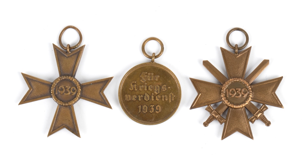 Lotto di tre KVK, due seconde classi di cui una con spade ed una medaglia di terza classe, senza nastro, in ottimo stato