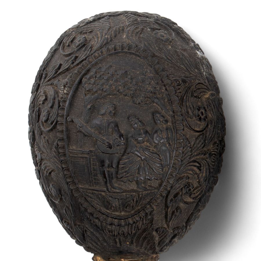 L’uso della noce di cocco intagliata era comune in Europa tra il XVII e il XIX secolo, soprattutto in oggetti di prestigio. Calici di questa tipologia sono spesso associati a un’epoca che va dal XVII al XIX secolo. La lavorazione raffinata della noce di cocco e l’uso del bronzo dorato erano tipici di oggetti prodotti nelle botteghe europee, in particolare in Germania.