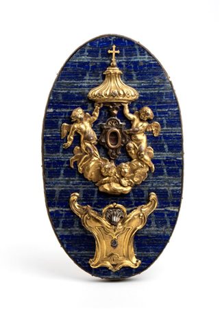 Reliquiario di San Pietro in bronzo dorato e lapislazzuli Italia XVII-XVIII secolo Altezza x larghezza x profondità: 3 x 40 x 24 cm. Peso complessivo: 2885 gr.