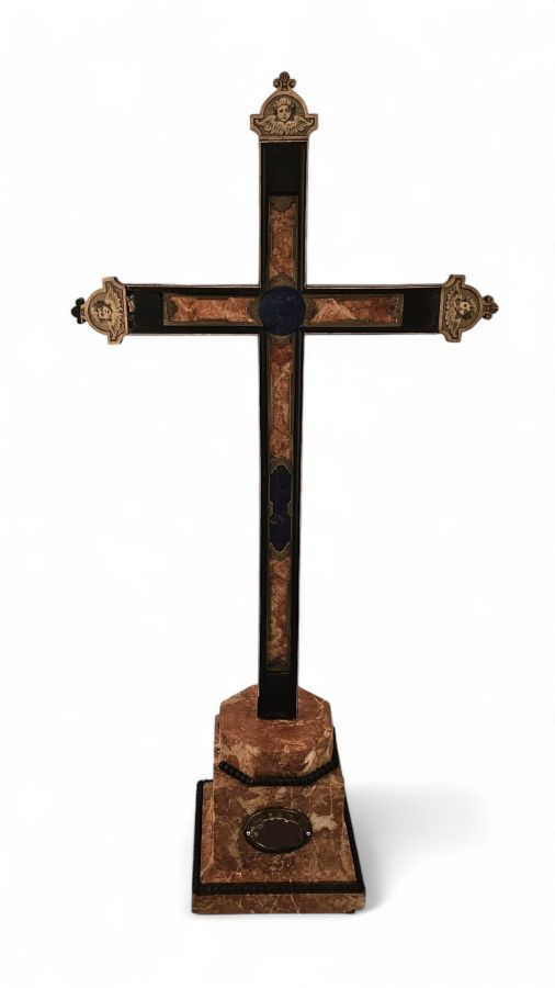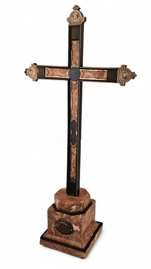 Croce in legno, marmo, lapislazzuli e osso XIX secolo