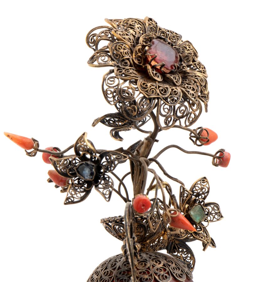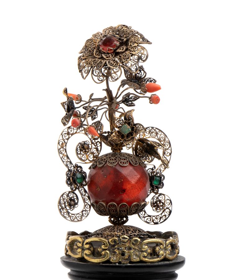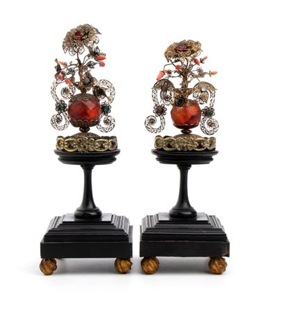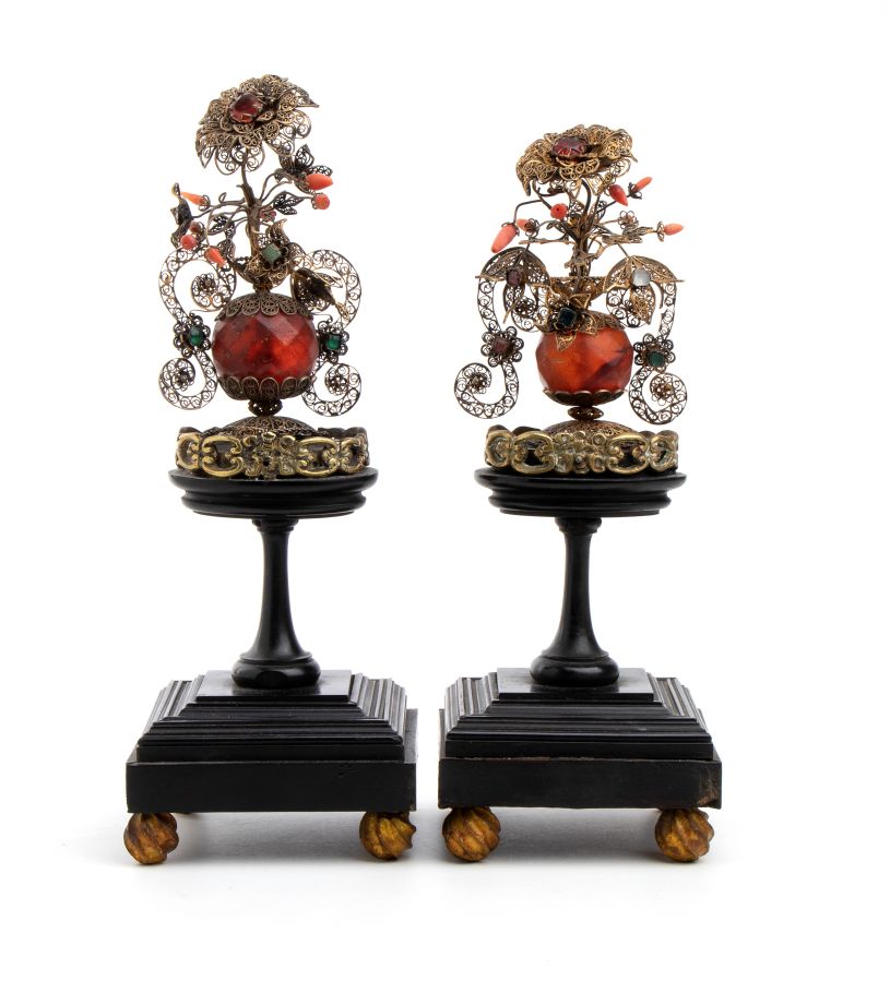 Due vasetti portapalme in filigrana e ambra Sicilia XVIII secolo