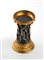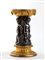 Fusto centrale in bronzo, modellato a raffigurare sette figure di putti danzanti, avvolti in drappi, tra cui una figura con testa caprina. La scena sembra voler rappresentare un baccanale, una festa in onore del dio Pan, solitamente raffigurato con corna caprine. Il baccanale era una festa religiosa dell'antica Roma dedicata al dio Bacco, o a Pan, dio del vino, dell'ebbrezza e della liberazione dei sensi. Durante queste celebrazioni, i partecipanti si abbandonavano a rituali sfrenati, caratterizzati da danza e musica, celebrando l'estasi e il divino, il consumo abbondante di vino e la libertà dei costumi. Questo riferimento è evidente anche nelle decorazioni della parte superiore in bronzo dorato, dove sono raffigurati grappoli d'uva pendenti, e nella parte alta, dove si ripetono i motivi dei putti danzanti con al centro una scena raffigurante figure maschili e femminili nude, distese supine, con una figura centrale dotata di corna caprine che suona il flauto, noto come il "flauto di Pan". In effetti, la figura che suona lo strumento è identificabile come Pan.