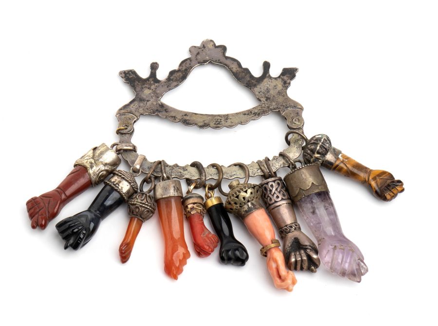 Gruppo di amuleti in argento e pietre dure Italia meridionale, XIX secolo