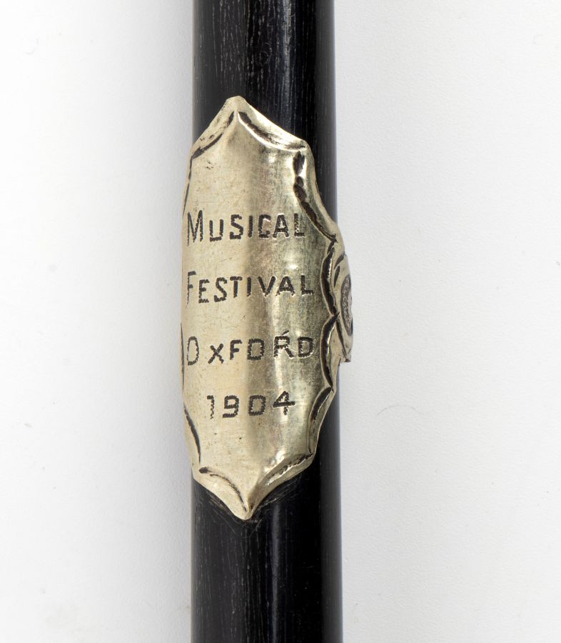 L'iscrizione riportata nel cartiglio posto sulla bacchetta recita: "MUSICAL FESTIVAL OXFORD 1904".